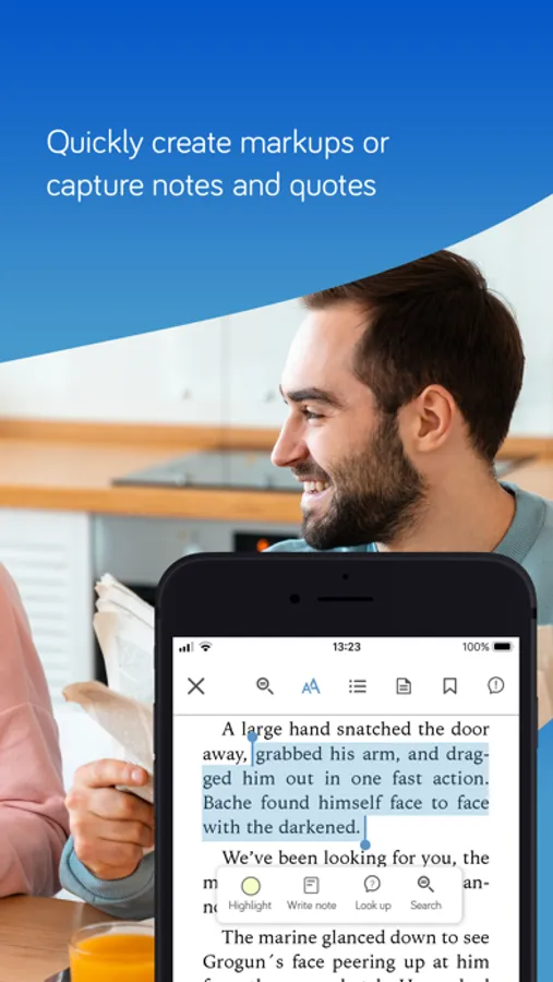 - Quickly create markers in the eBook and record personal notes and quotes in the text