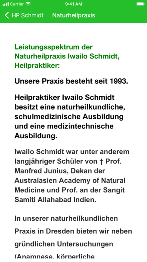 Diese App dient der Information über die Naturheilpraxis Iwailo Schmidt, Heilpraktiker in Dresden. Sprechzeiten, Standort, Telefon, Diagnose- und Therapieverfahren, Angebote, Veröffentlichungen, Fachartikel, Fachvorträge, Videos, Ausbildungsmöglichkeiten, Seminare, radionische Haaranalysen und aktuelle Informationen.