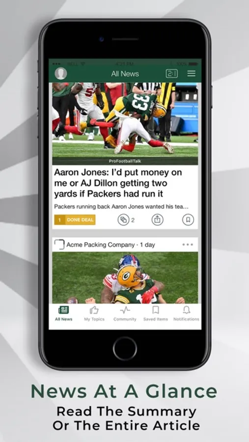 * A news summary covering stories about the Packers from all sources with no repeat stories - see all sources that covered any story with a simple long tap