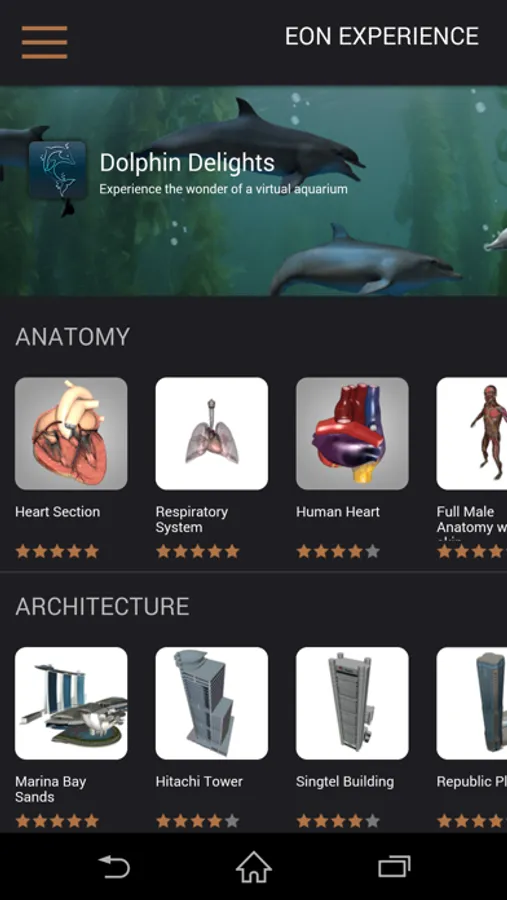 The EON Experience VR is an application similar to Nextflix, News apps, etc. This means stable internet connection is required to enable proper functionality. EON Experience VR gives you access to a growing number of free AR and VR applications. Browse a growing selection of titles, as new Experiences are added regularly. Content inside the EON Experience VR app will continue to update with more applications. Simply stay up-to-date and be on the look out for more applications coming soon!