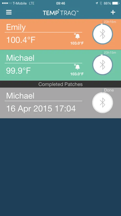 TempTraq® is a wearable, Bluetooth continuous temperature monitor in the form of a soft, comfortable, single use patch. The patch senses, records and transmits body temperature for 24 or 48 hours via Bluetooth® 4.0 (LE) to an iPhone®, iPad®, or iPod touch® with Bluetooth 4.0 capability running the TempTraq app. With TempTraq Connect, users may share local patch data in real time with other users running the TempTraq Connect app with an internet connection.
