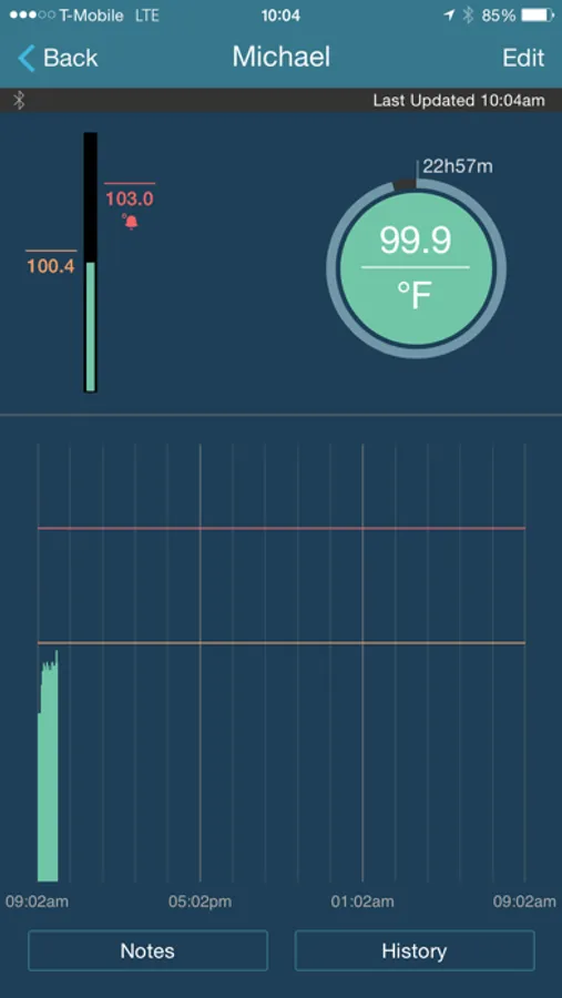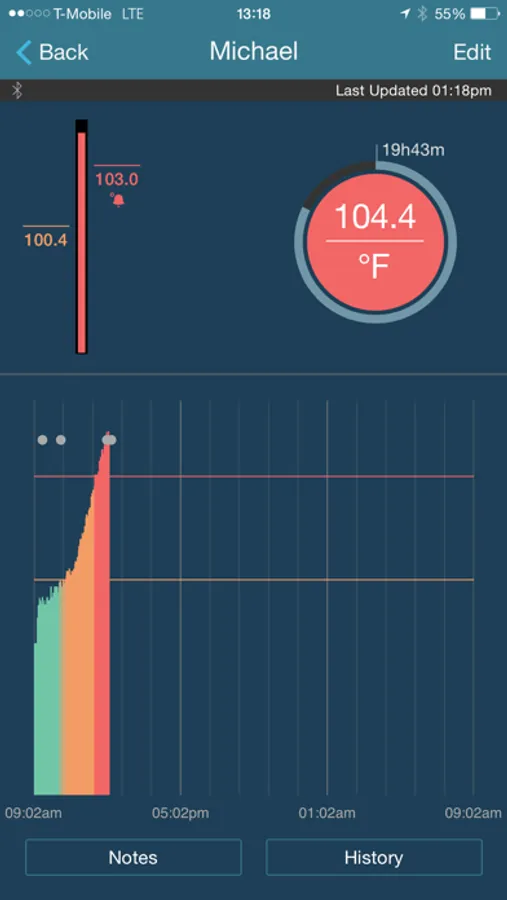 The TempTraq app provides an intuitive and easy to use interface to view the temperature data transmitted from the patch.