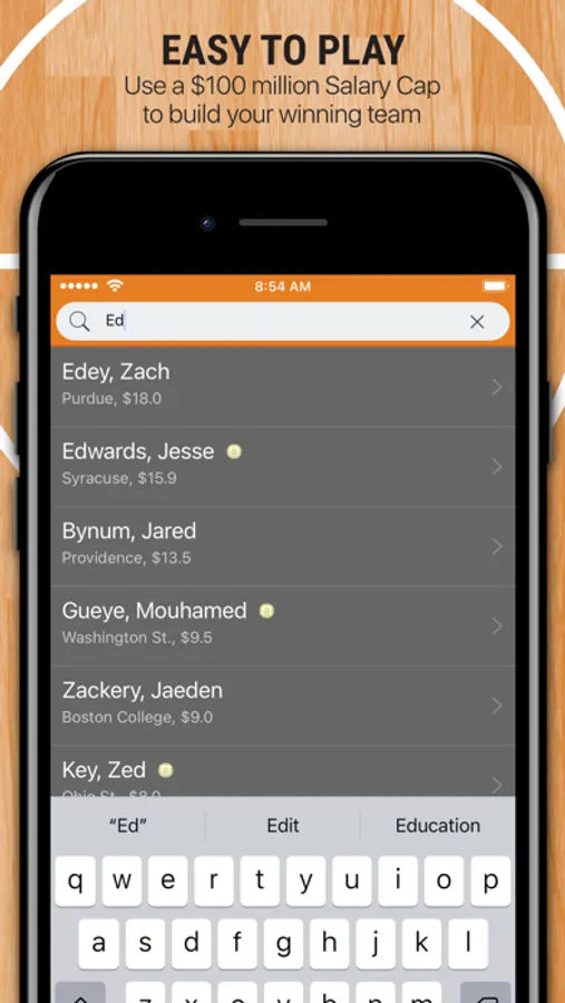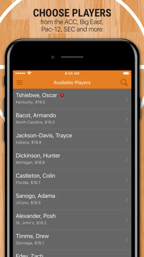 Using an imaginary $100 million bank account, pick your team of 10 2023-24 college basketball players (from the AAC, ACC, Big East, Big Ten, Big-12, Pac-12 & SEC Conferences, and any other teams in the AP Top 25), that you think will rack up the most points each week using the Head2Head scoring system. The players listed have been assigned a salary based on past performance and expected performance this season. Choose 10 players regardless of position and must not exceed the salary cap. Your players will earn Head2Head Fantasy Points based on their actual on-court performance.