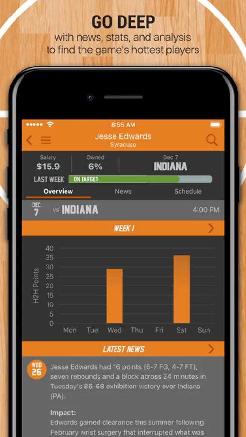H2H College Fantasy Basketball is not sponsored, endorsed or administered by, or associated with the National Collegiate Athletic Association (NCAA), any NCAA school or player, or Apple and its affiliates. No purchase necessary. All entries must be received by Tuesday, November 28, 2023 to be eligible to play.