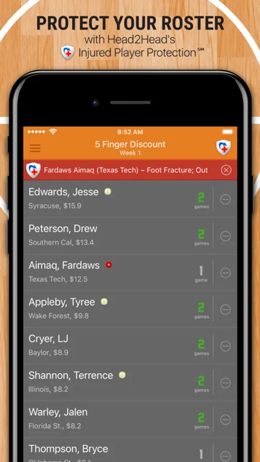 Freak injuries. Last-minute benching. Canceled games. Sometimes the season can be a bit unpredictable. But with H2H's Injured Player Protectionâ„ , you can rest easy knowing that if the unexpected happens to someone in your lineup, you're automatically covered.