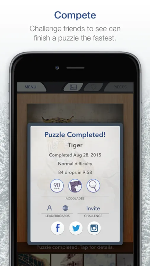 • Share your puzzle-solving triumphs with friends on Facebook or Instagram.