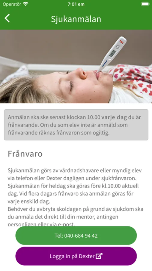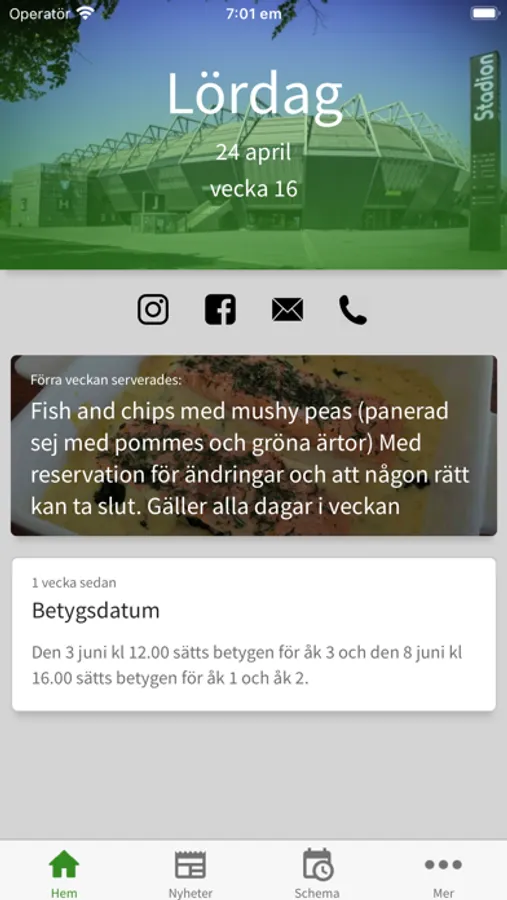 I appen hittar du allmän info, inställda lektioner och sjuka lärare, senaste informationen så fort den läggs upp. Även matsedeln finns tillgänglig såväl som alla klassers och lärares schema. Lärares kontaktuppgifter hittas också i appen.