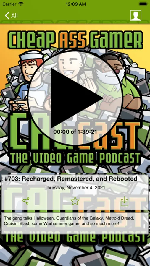 The CAGcast app is the easiest way to listen to the CAGcast video game podcast from Cheap Ass Gamer. Be the first to listen to CAGcast episodes and get access to exclusive content. There are bunch of cool features including tagging your favorite episodes and saving them to a list so you can easily enjoy them over and over until your head explodes! True fans of the CAGcast won't want to be without this app!