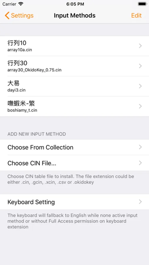 - To install custom input methods like Boshiamy by selecting the CIN table file from the file browser and choose install