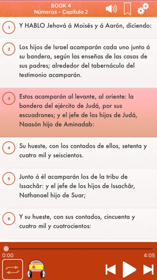 Esta aplicación te da la capacidad de leer y escuchar a todos los libros del Antiguo Testamento y el Nuevo Testamento en su Iphone / Ipad / Ipod Touch.
