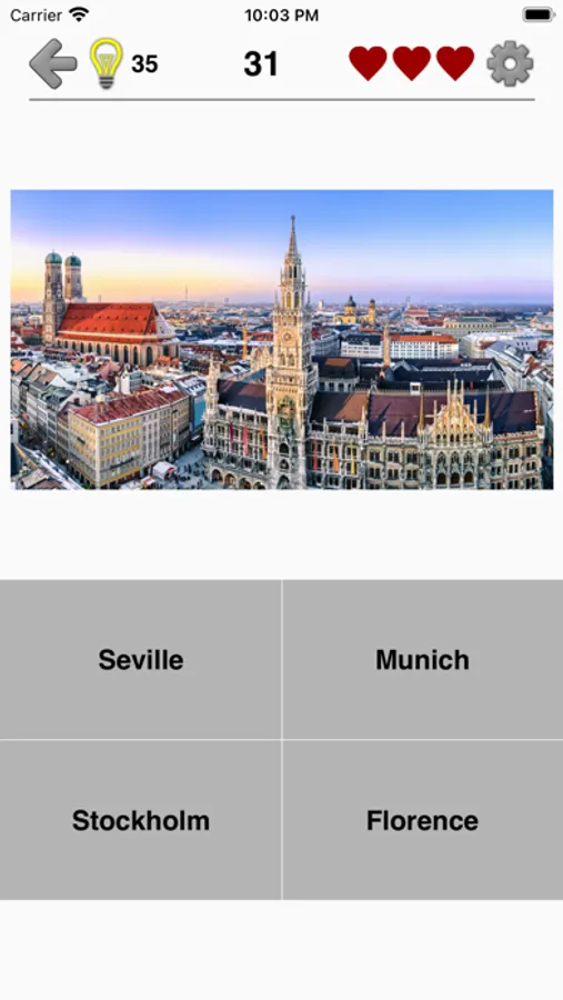* Easy spelling quiz: You won’t get stuck if you don’t know the answer because the app allows you to guess each word letter by letter and will immediately show if the next letter is incorrect! The cities are arranged in the order of increasing difficulty. If you think that the first questions are too easy, just proceed forward until you encounter really hard ones.