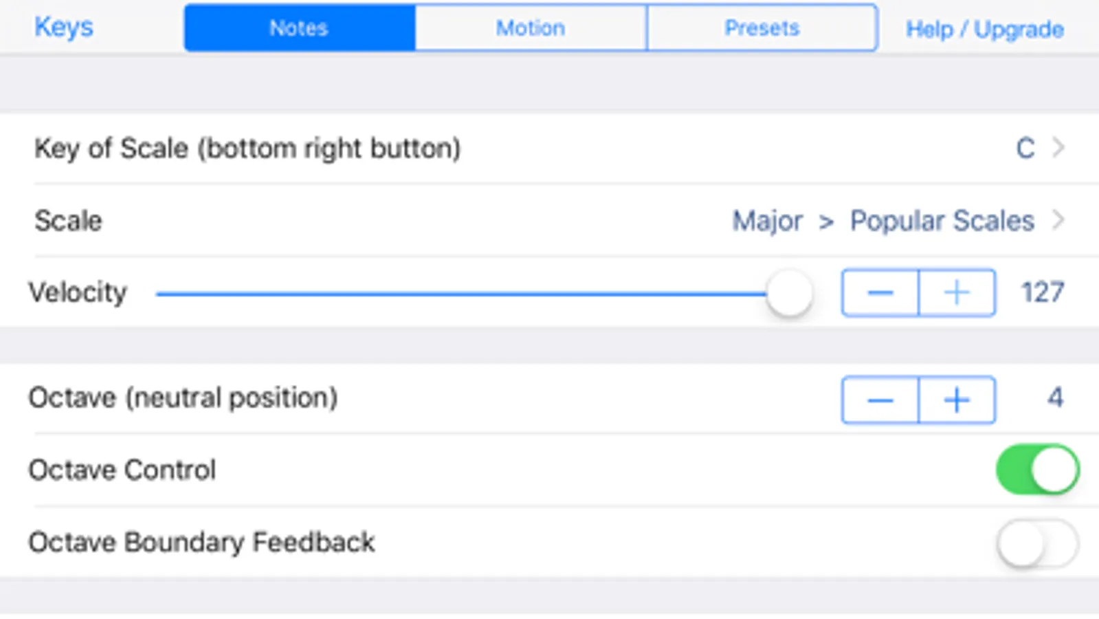 1) Single-Key mode (free version): This Motion Synth App mode allows you to quickly engage with motion-based music control, and includes tutorial videos explaining how to use the in-app sounds.