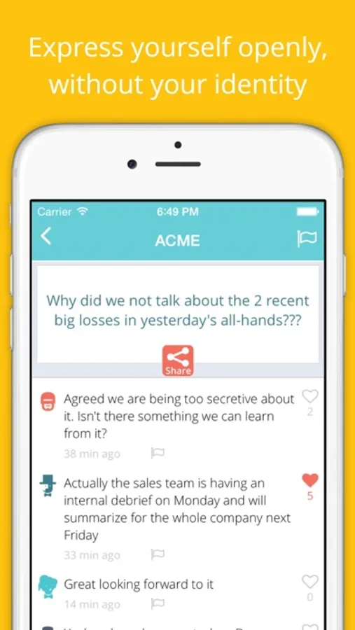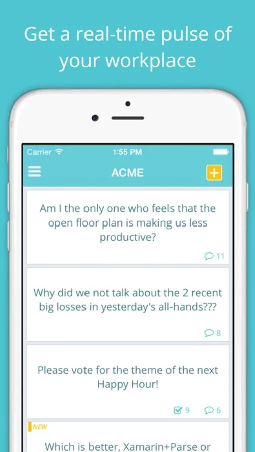 With Betterworks Engage, have open and honest conversations with your coworkers without your identity. Be plugged into your coworkers opinions and get a real-time pulse of your workplace. Ask and answer anonymously, vote and comment on coworker polls to crowd-source ideas and express yourself.