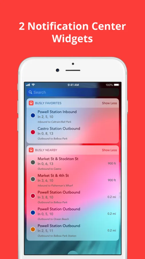 2 Notification Center widgets for easy access to time predictions for nearby stops as well as your favorites.