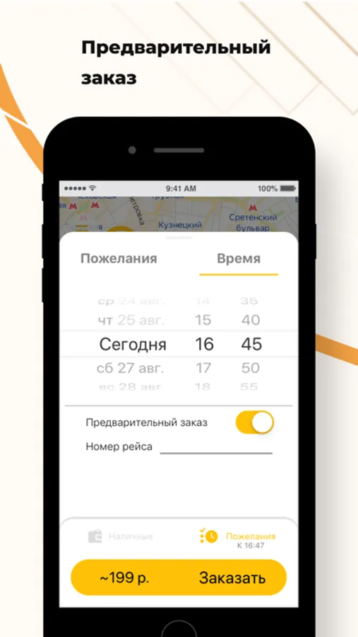 Вызывайте такси к определенному времени, если нужно запланировать поездку заранее. Например, поездка в аэропорт, чтобы успеть на регистрацию.