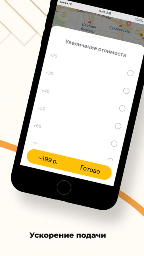 Сокращайте время ожидания, увеличив стоимость заказа. Так водитель быстрее заберет ваш заказ. Пригодится, если нет времени ждать даже одну лишнюю минуту.