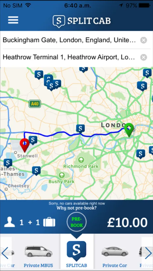 - Request a seat in a shared Splitcab via the app and get whisked away door to door to the airport for cheaper than the Heathrow / Gatwick Express.