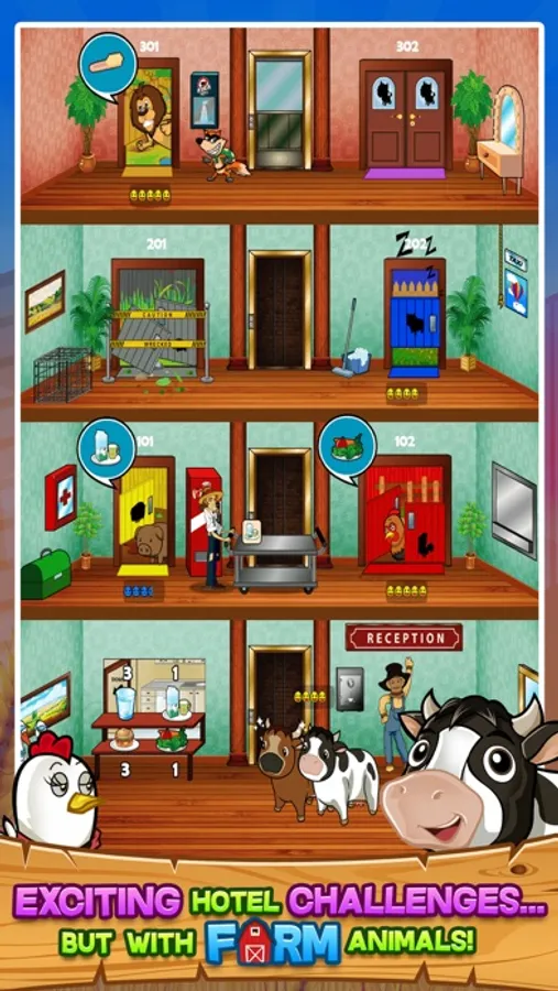 In Farm Hotel, you are a farmer turned hotel manager. You and your daughter must run the hotel.