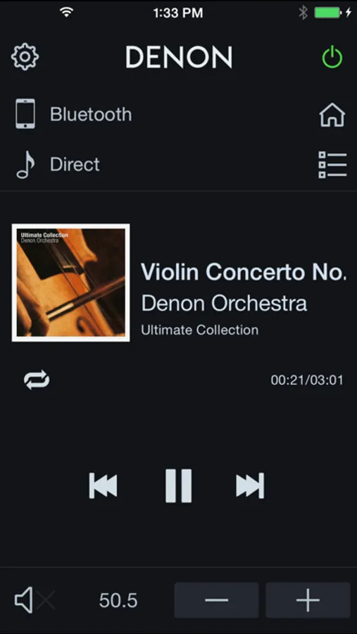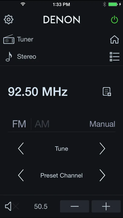 Control the basic functions of your Denon with power, volume, input, sound mode selection, Tuner and Playback of music in your mobile device or USB memory.