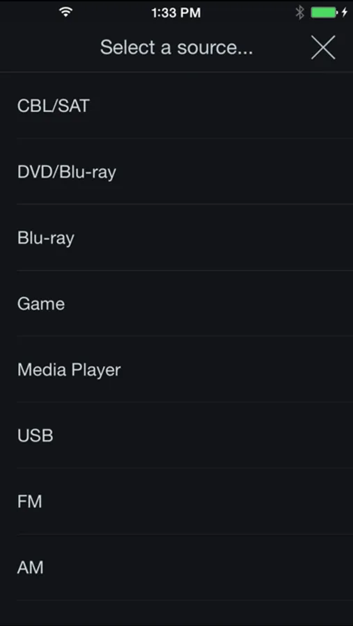 Before you use this app, please connect your iOS device through the device’s Settings > Bluetooth menu with your AVR.