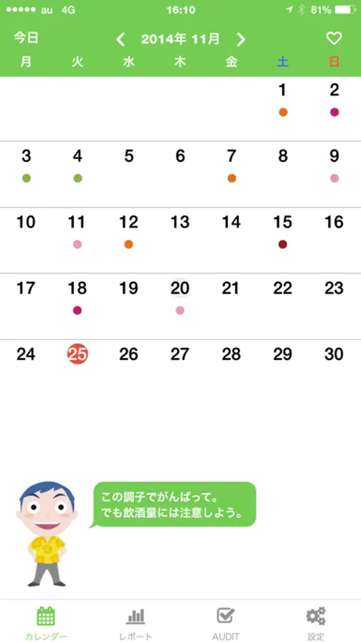 節酒カレンダーは飲酒履歴を視覚的に管理するカレンダーや充実したレポート、AUDITなどの機能を実装!