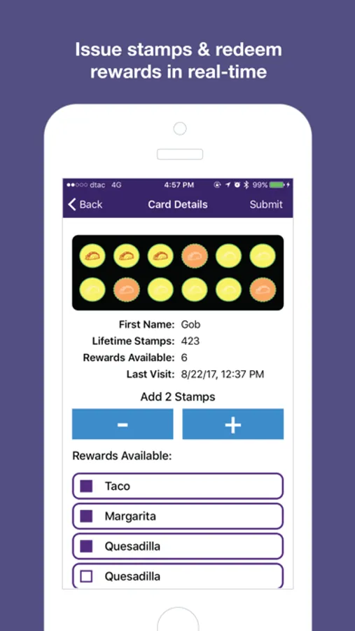 - increase or decrease the number of stamps on your customers' Loopy Loyalty digital stamp card,