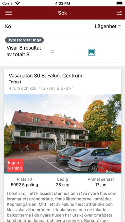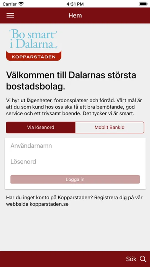Med Kopparstadens bostadsapp kan du söka lediga lägenheter, förråd och fordonsplatser.
