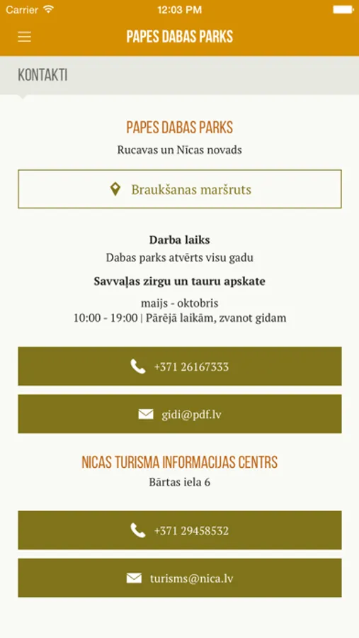 Šī bezmaksas aplikācija sniedz izsmeļošu informāciju dabas parka “Pape” apmeklētājiem. Aplikācijā pieejami apskates objektu apraksti, dabas taku maršruti, visas aktīvās atpūtas iespējas, naktsmītņu piedāvājums, kā arī interaktīva karte, kas Tev ļaus ērti un parocīgi izplānot savu maršrutu. Tāpat aplikācijā atrodama kontaktinformācija, darba laiki.