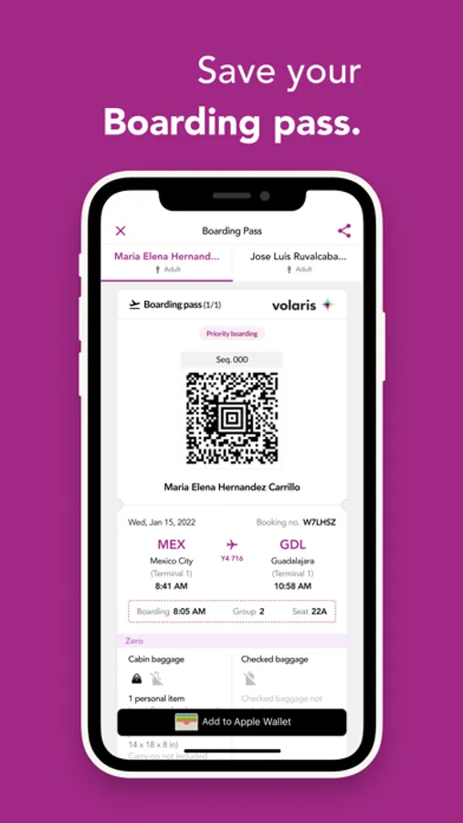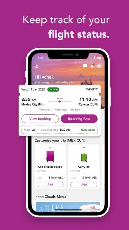 Customize your booking: add services such as checked or carry-on bags, seats, the inflight menu, or combos, even if you are already at the airport and minutes away from boarding the plane.