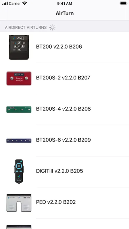 Supports all AirTurn models with configuration for PED, PEDpro, DIGIT III, BT200 and BT200S.
