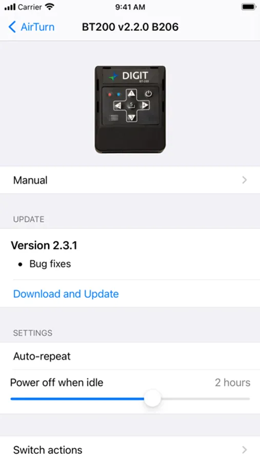 UPDATE YOUR AIRTURN: If a software update is available for your AirTurn you will be notified and provided with details of the update. If you choose to go ahead and update the software it will automatically be downloaded from the Internet and transferred to the device.