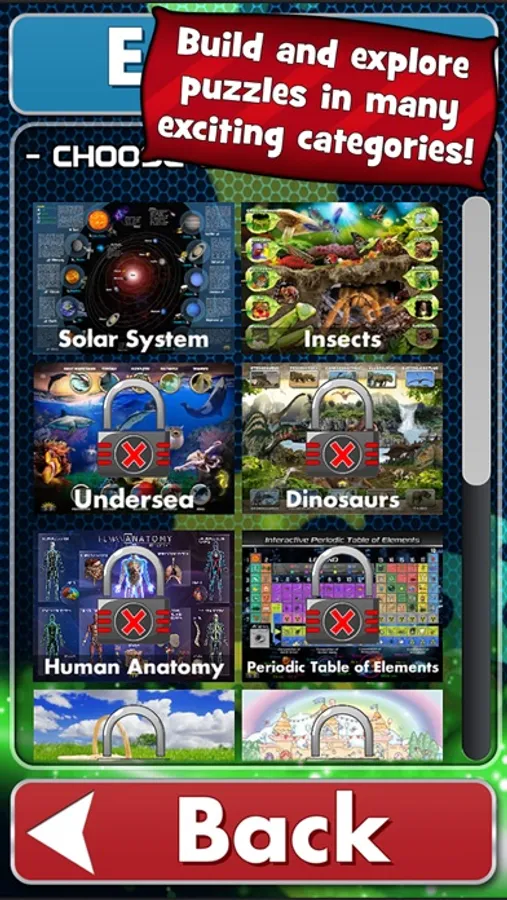 Popar has many categories ranging from dinosaurs, sea animals, safari, construction vehicles, princesses, human anatomy, sports, all the way to our solar system, and many more places and pieces in-between! Each interactive puzzle features 7 different piece counts to choose from (the easy 6 piece to the expert 300 pieces). Some additional features include border selection, unique backgrounds, a timer, and soon to feature competitive puzzling with your friends!