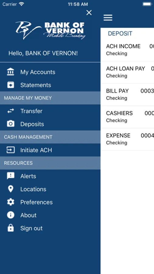 Bank of Vernon Mobile Banking supports all account types including checking, certificates of deposit, money markets, savings, and loans.