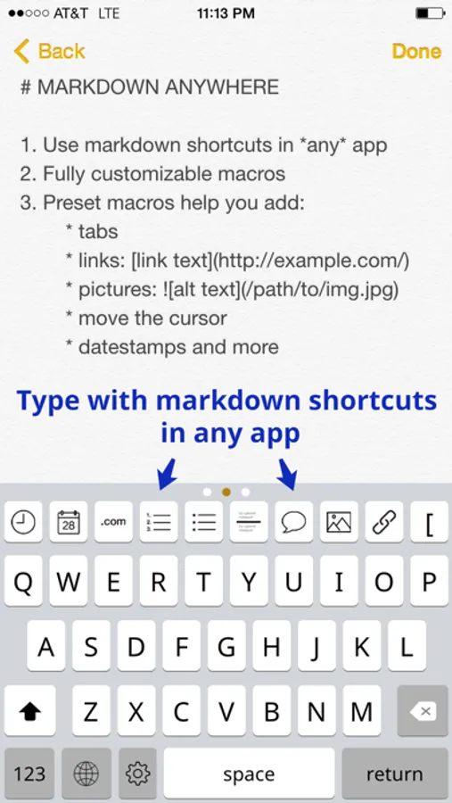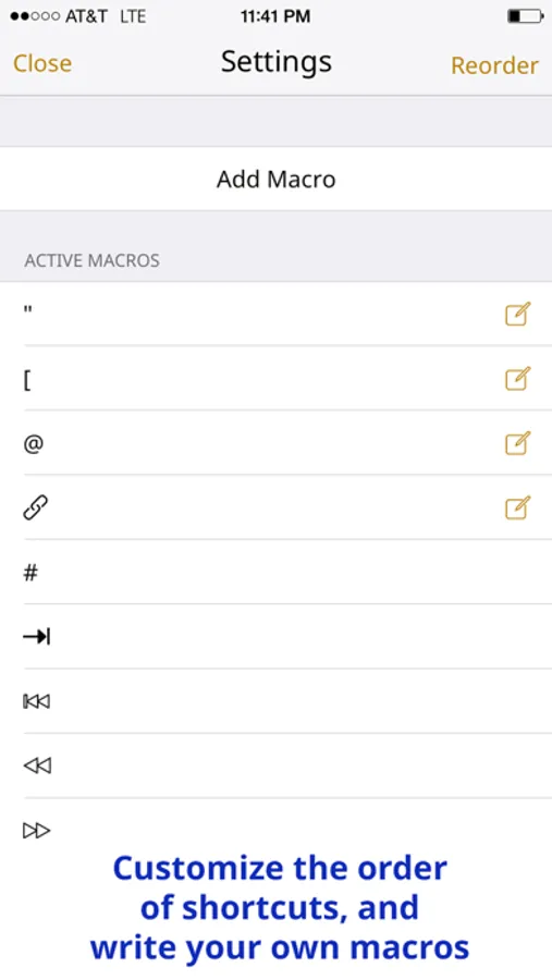 Type with an extra row of customizable macros and shortcuts **in any app**.