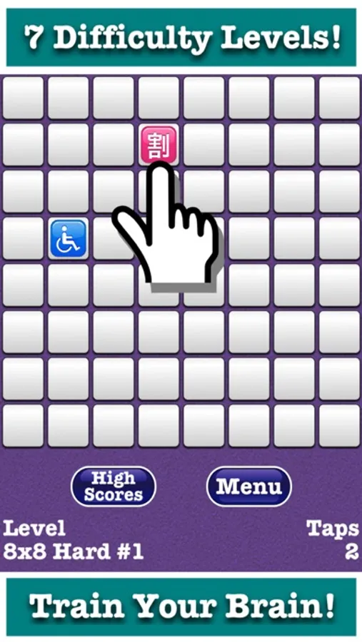• Seven difficulty modes! Easy (4x4), Light (5x5), Medium (6x6), Tricky (7x7), Hard (8x8), Harder (9x9), and Crazy (10x10)