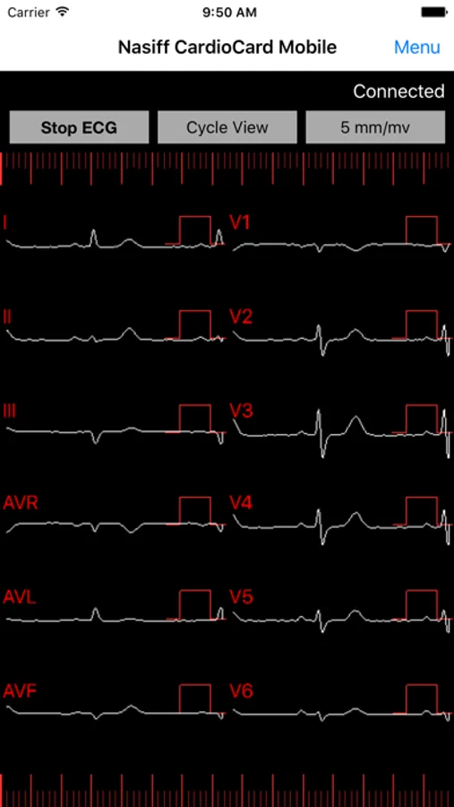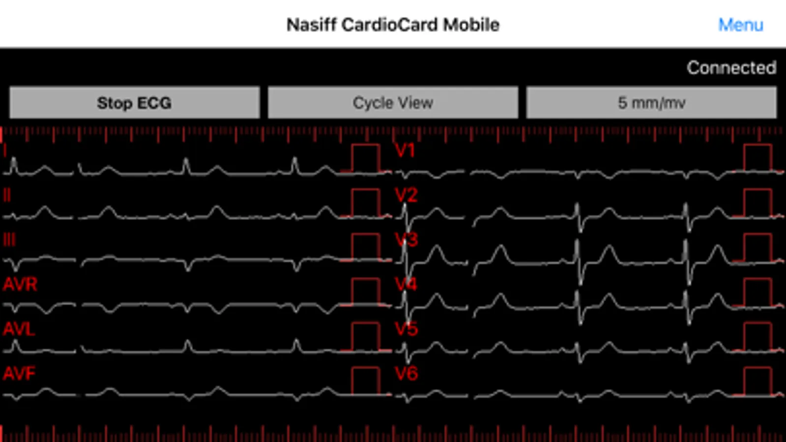 The Nasiff CardioCard Mobile™ ECG app allows the medical professional to use their IOS-compatible CardioCard™ ECG wireless monitors to perform full 12 lead ECGs on Apple IOS devices. CardioCard Mobile™ records and stores ECGs, creates standard format reports, and transfers the ECGs to the CardioCard™ management system on a MAC or Windows computer. The CardioCard™ management system provides the Cardio unlimited patient EHR database, networking, EHR interfaces, Cardio ECG analysis, historical ECG comparisons, other built-in capabilities and other expanded connectivity options.