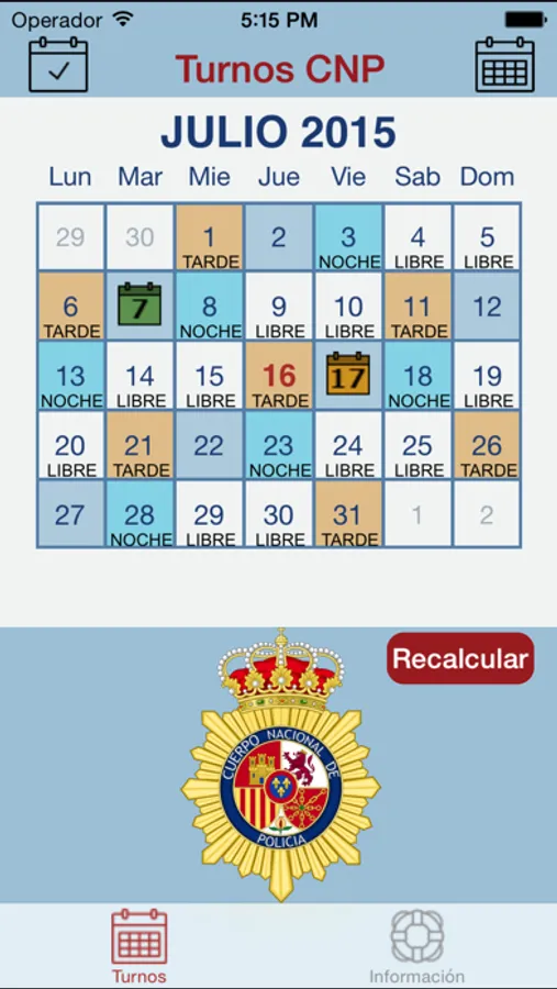 Esta aplicación calcula de forma automática el cuadrante de turnos más comunes en el Cuerpo Nacional de Policía y en algunos grupos de las Fuerzas y Cuerpos de Seguridad del Estado.