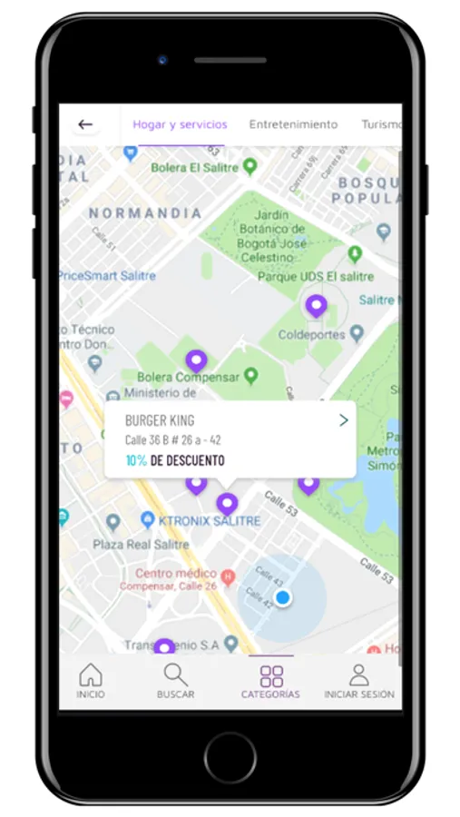 - Encontrar los beneficios más cercanos a tu ubicación y visualizarlos en el mapa para que puedas llegar fácilmente a los establecimientos aliados.