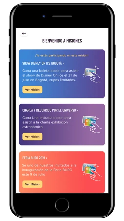 - Participa por obsequios o experiencias sin costo en nuestro módulo de misiones de una manera fácil y divertida.