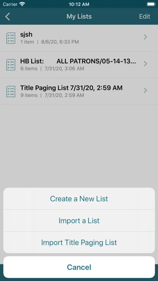• Import a list: Access item record review files and your library's Title Paging List from Sierra, and work with them anywhere.