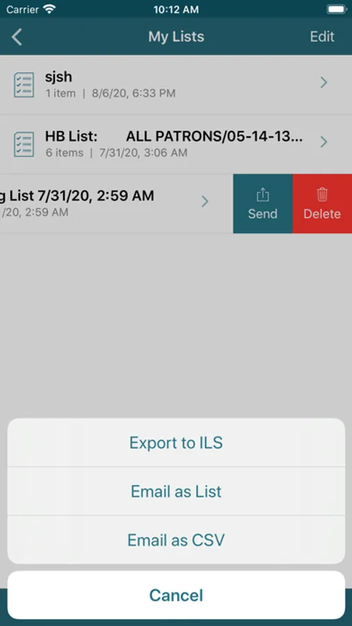 • Email your list: Share lists with others - whether they be patrons, students, faculty, or colleagues - by sending them via email.