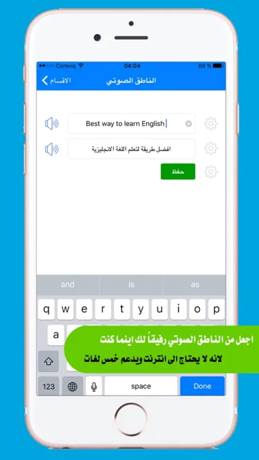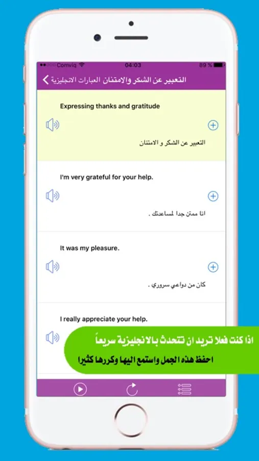 - يمكنك الاستماع الى العبارات حتى وان كان البرنامج مغلق او اذا كنت تعمل على برنامج اخر او حتى اذا كان الهاتف في وضع الاستعداد