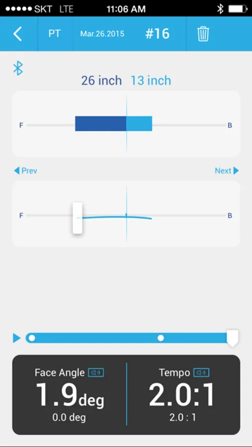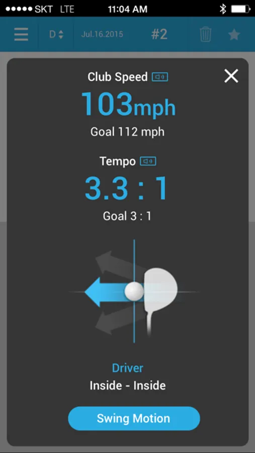 2. Displays swing analysis on the smartphone which is also read by a synchronized voice.