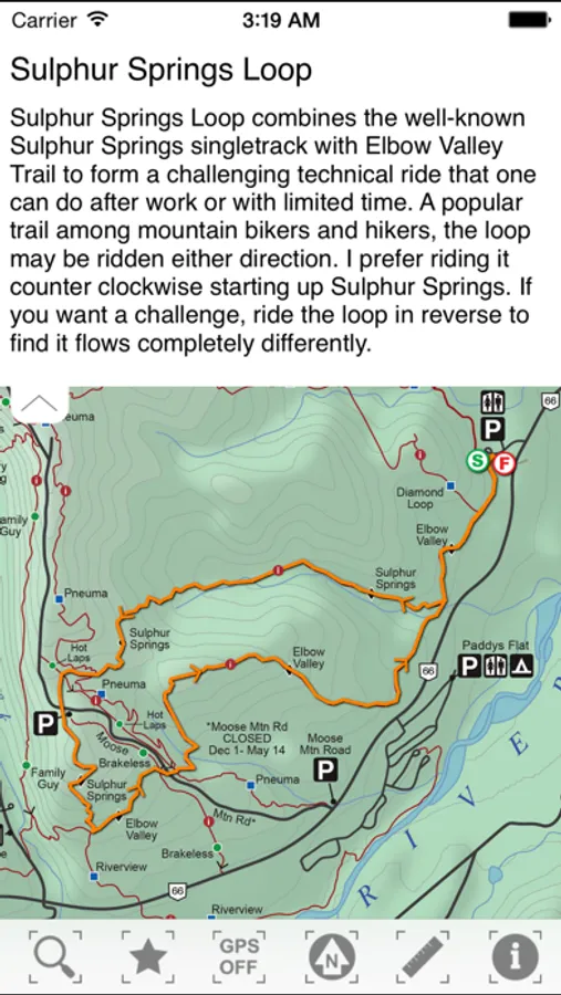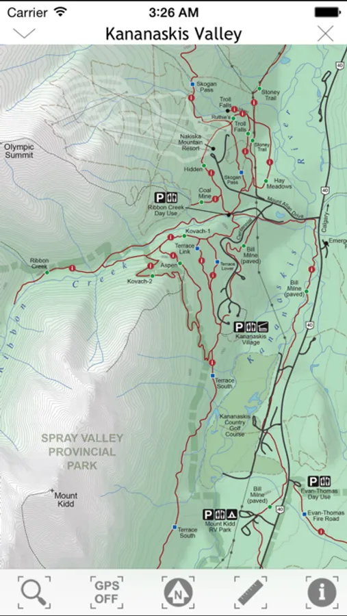 Kananaskis Country is located 30 minutes west of Calgary, boasting an abundant network of trails accessible by, and open to, mountain bikes. The area has something to offer every rider level and ability, including paved pathways for cruising on, big alpine x-country rides, and downhill gravity assisted trails. This app provides all the information you need to access these trails and with the location tracking enabled, you’ll know exactly where you are at all times!
