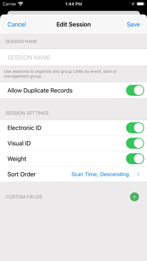SESSIONS MODE - SCAN CATTLE AS THEY ARE WORKED IN THE CHUTE