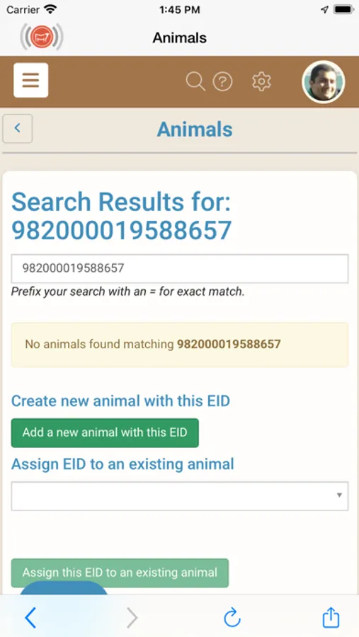 Quickly look up and retrieve cattle records in CattleMax cattle management software. Connect your EID tag reader to your mobile device, tap the CattleMax menu item, and scan. The CattleMax feature requires an active CattleMax account (trial or customer) and an Internet connection.