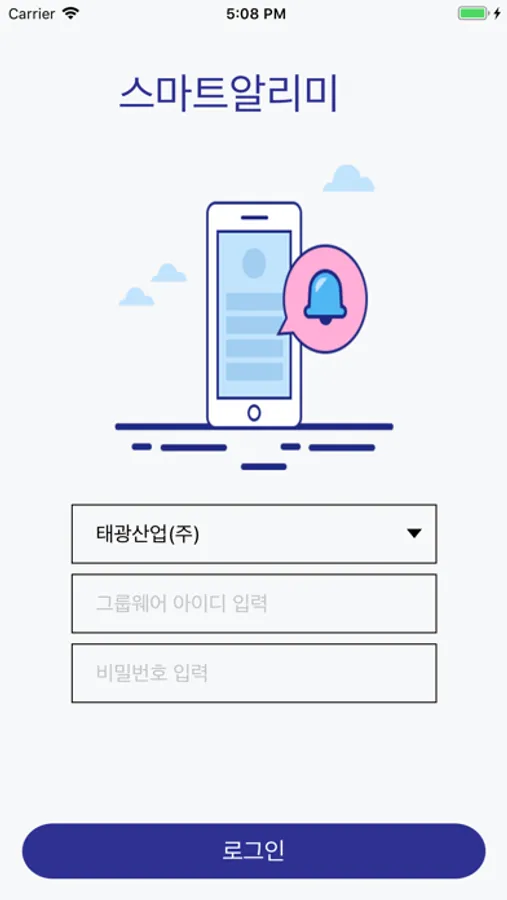 스마트 알리미는 스마트폰 고유의 기능을 활용하여 기존의 SMS를 완벽하게 대체할 수 있는 기업용 모바일 메신저 서비스 입니다. 스마트 알리미는 기업 전용 메신저의 특성상 기존 오픈형 메신저 서비스 대비 한층 강화된 보안이 적용되며, 업무효율 향상을 지원하기 위한 최적화 방안(기업 전용 커스터마이징)을 제시합니다.