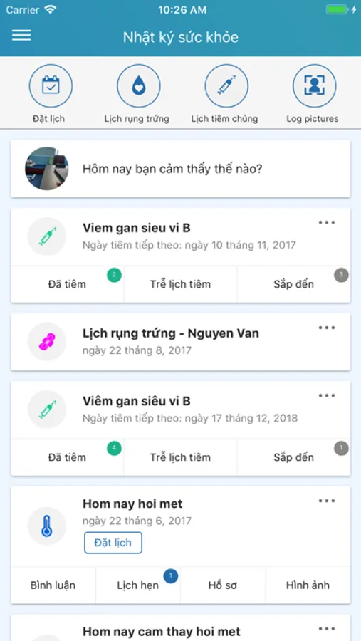 1) Ghi nhật ký sức khỏe, tình trạng bệnh