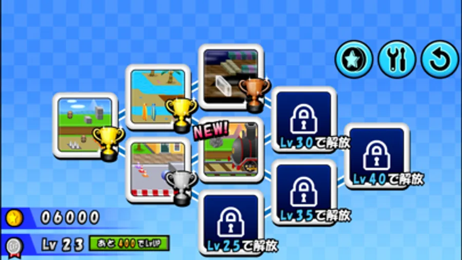 When you level up by earning experience points, new courses and parts will be released.