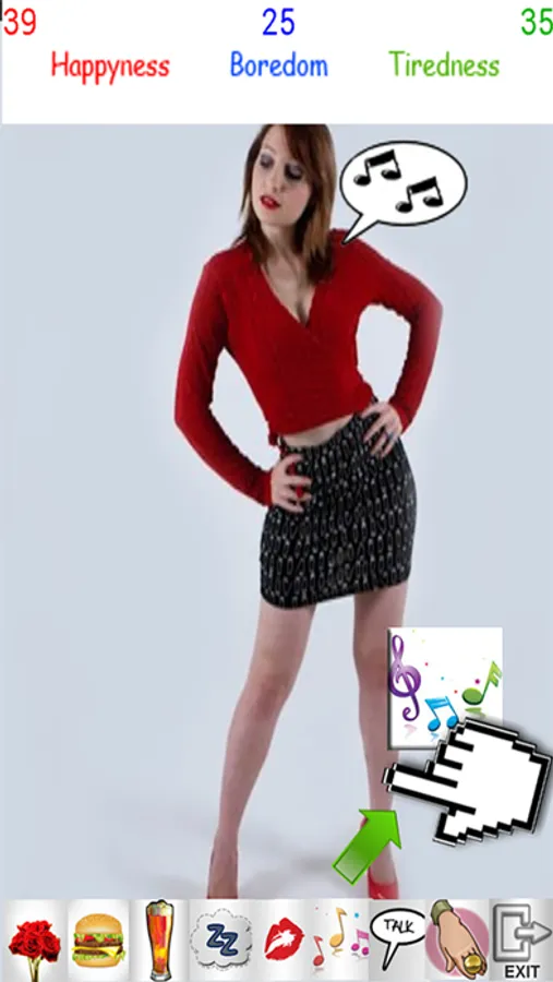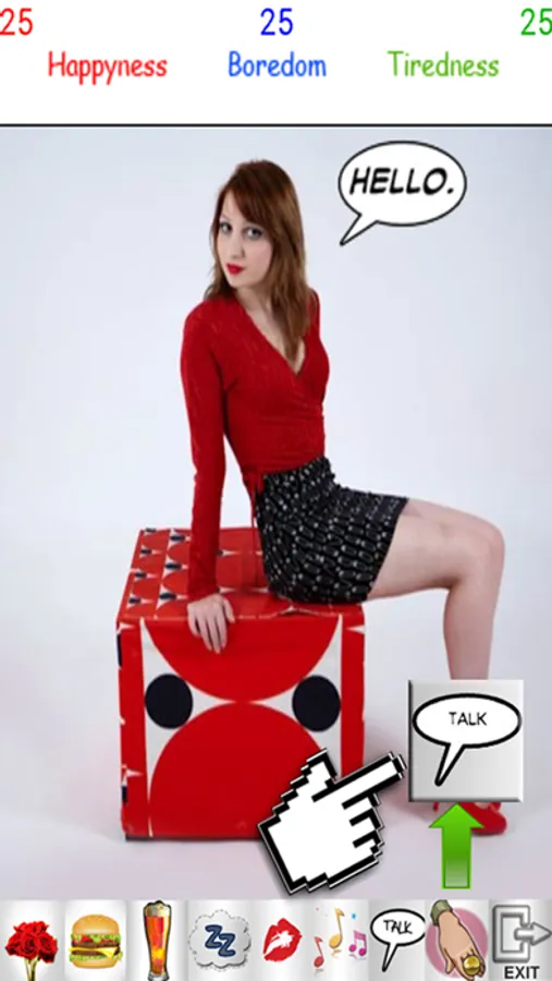 Here game inspired by the famous japanese Tamagotchi with a real actress character. It is an interactive pocket game with artificial intelligence engine where you have to deal with the mood of the main character and make it growing. This time, you have to make it HAPPY so it can get confident and bring you to next level of conversation.